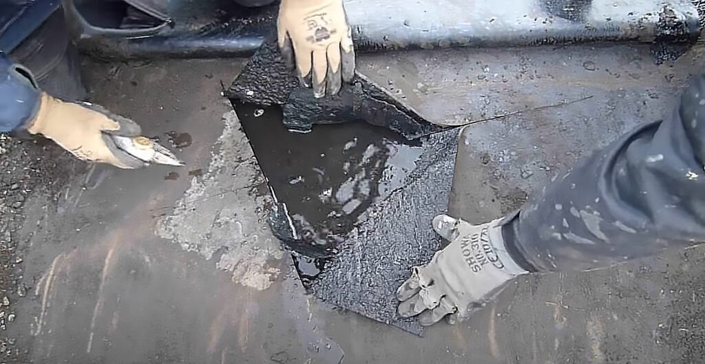Waterdichte bedekking voor platte daken met duurzame en strak afgewerkte bitumenlagen.